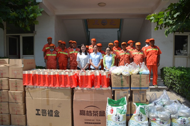看到这一情形,山东德瑞克仪器有限公司给药山街道的环卫工送上了绿豆、白糖、毛巾、香皂等解暑物品,为高温下坚守岗位、任劳任怨、持续奋战的他们送上一份清凉和关爱!并一再叮嘱他们要做好防暑降温工作,注意自己的身体,避开午后高温,更有效率地完成好清扫工作。