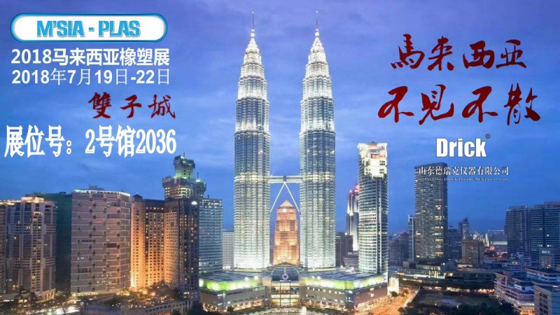 2018年马来西亚国际塑胶展M’SIA-PLAS 2018于今日在马来西亚吉隆坡太子世界贸易中心盛大开幕!山东德瑞克仪器有限公司为了提高自身实力,增强企业竞争力应邀前来!我们在2号馆2036展位等您!本次展会由我们外贸部屈总带队,欢迎国内外客户莅临指导!