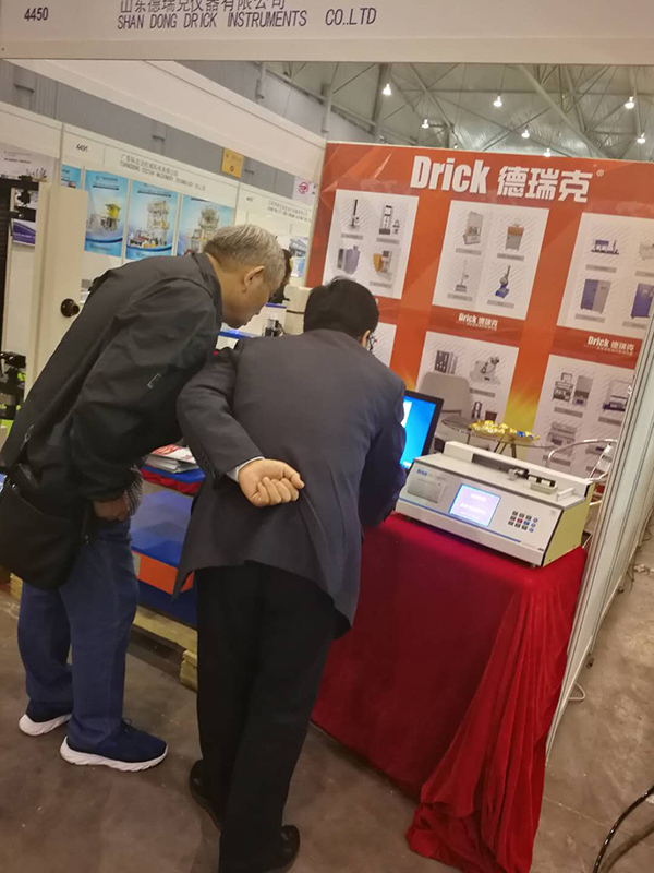 展会上我们向广大展商和观众展示了我们的主打产品:DRK127摩擦系数仪、DRK123抗压机、DRK101万能拉力机、DRK109耐破度仪、DRK113压缩仪、DRK133热封仪等。产品的实用性和性价比,吸引了一波又一波的参观人员驻足了解。
