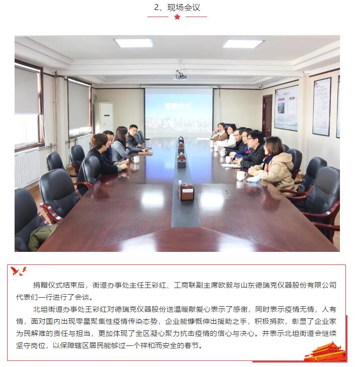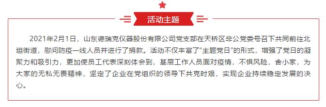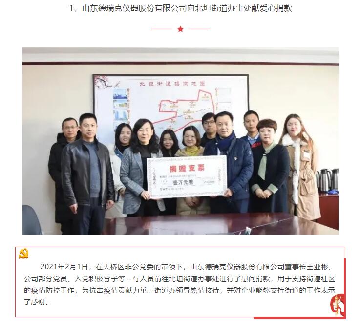 凝聚党心 共同抗疫:山东德瑞克仪器股份有限公司党支部响应天桥区非公党委号召向街道奉献爱心